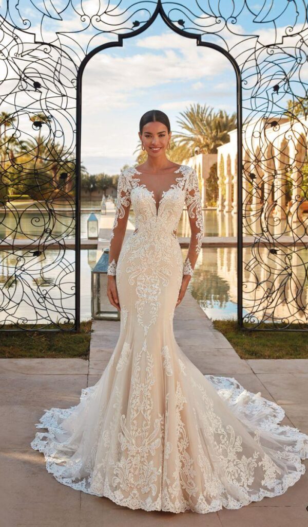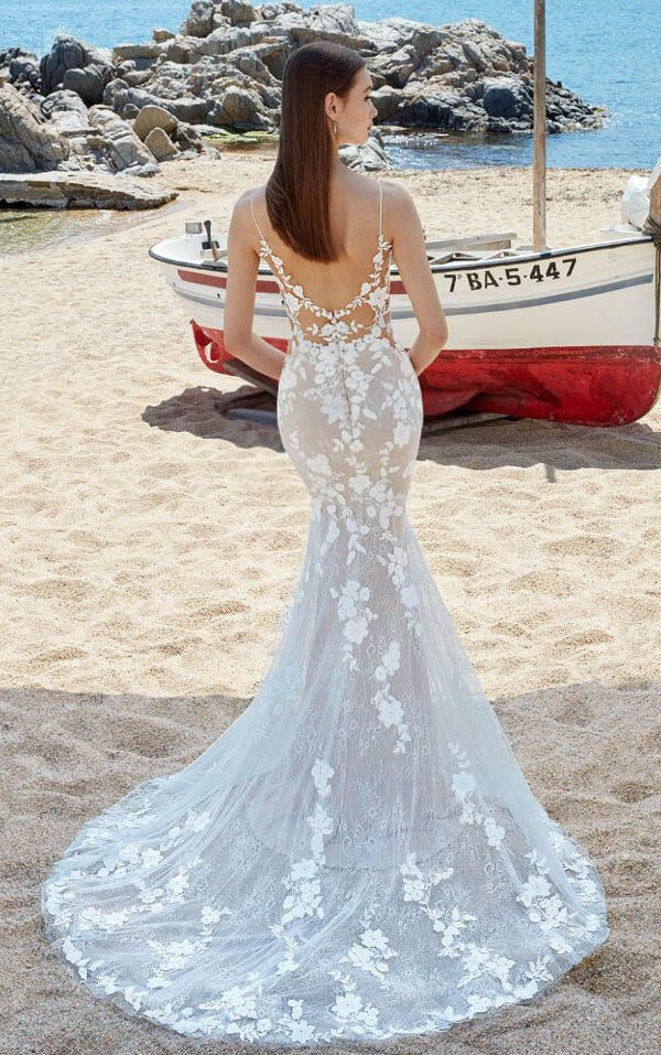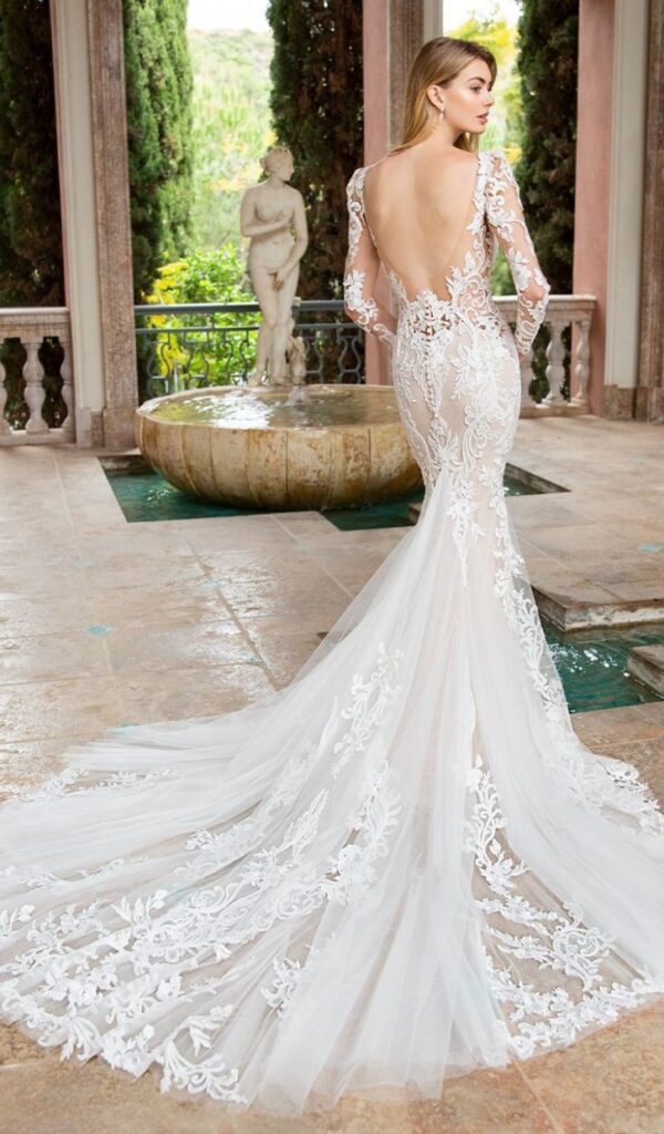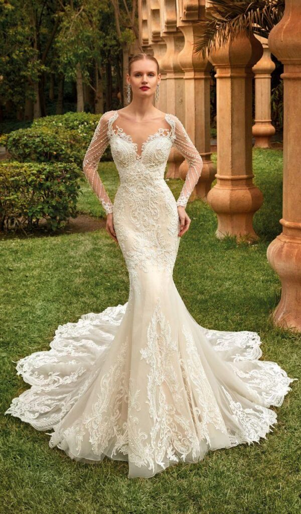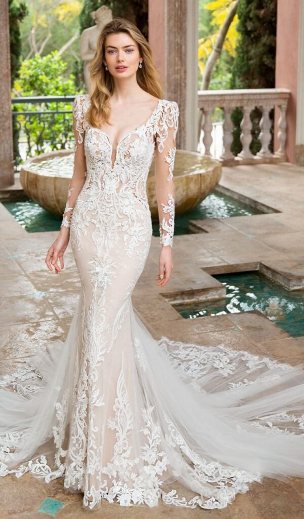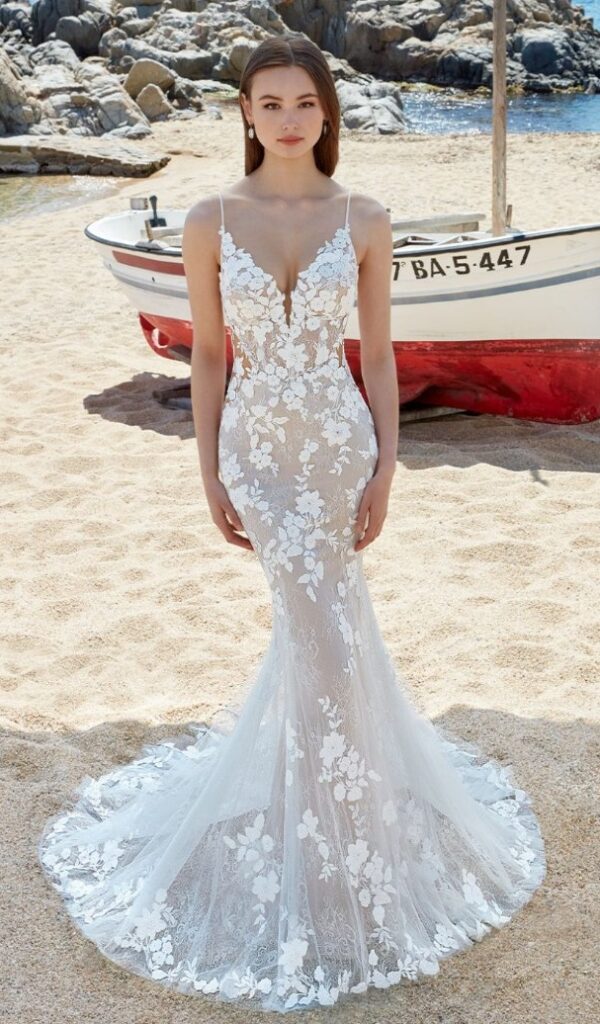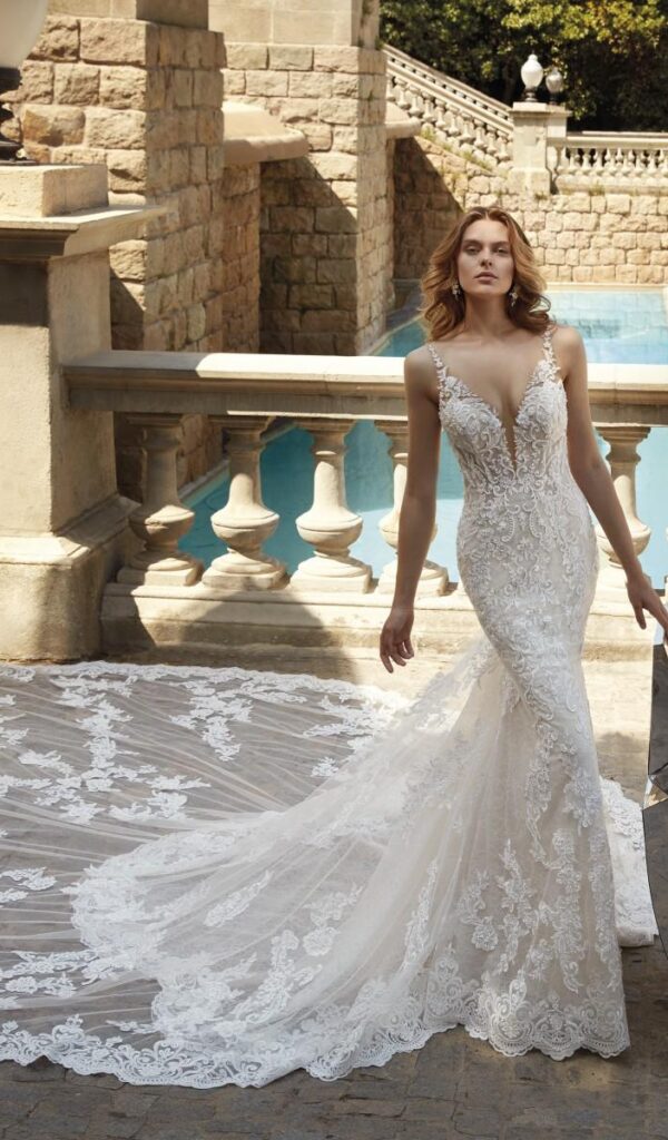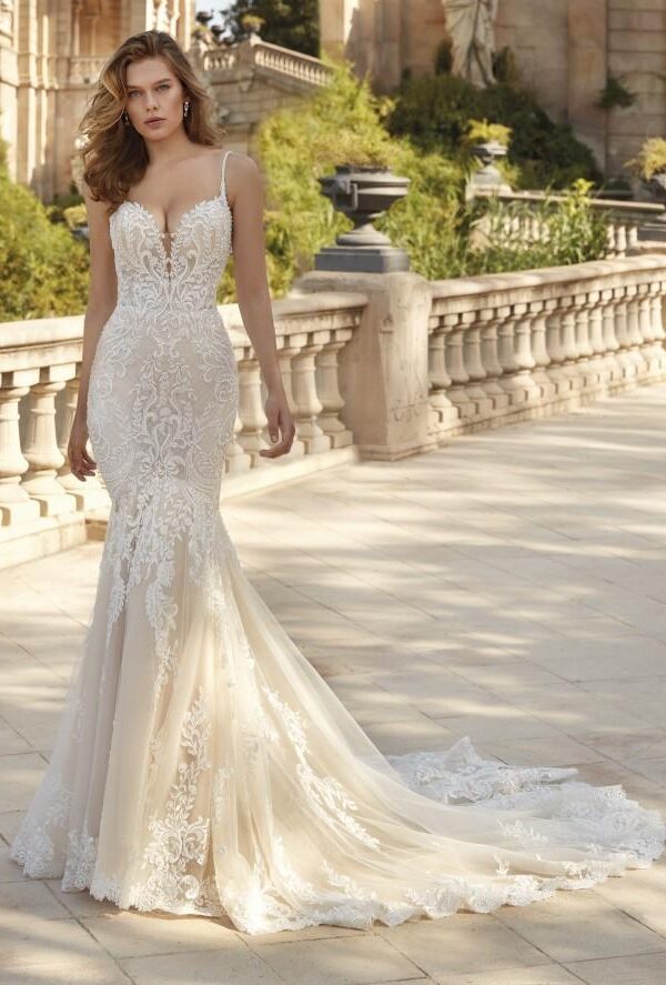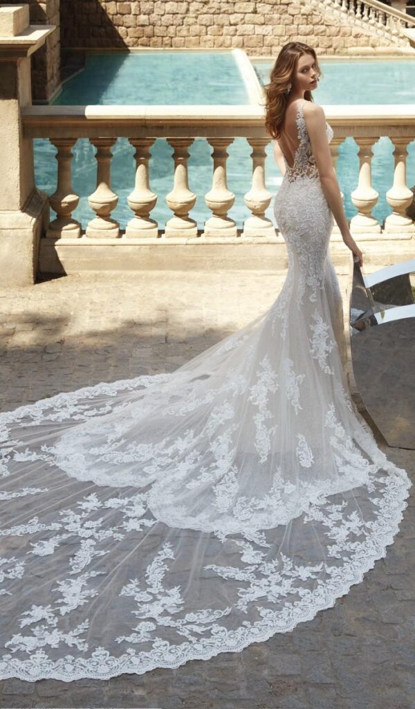 Los vestidos de novia sirena de la colección Mon Cheri son elegantes y sensuales. El corte sirena se ajusta al cuerpo desde la parte superior hasta la inferior, creando una silueta femenina y estilizada.