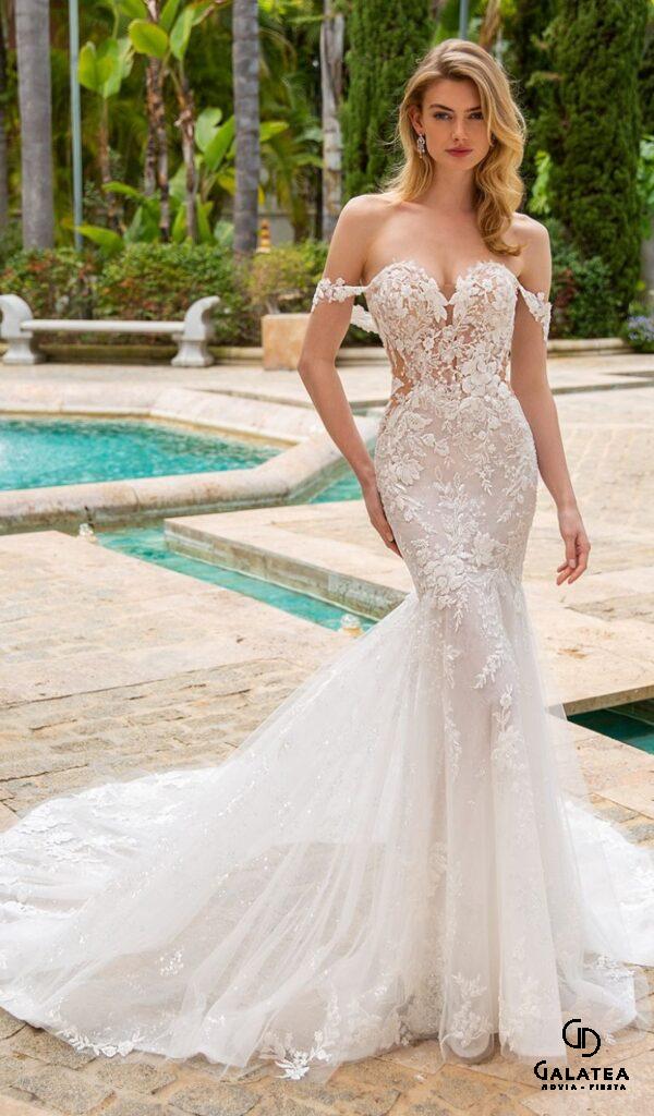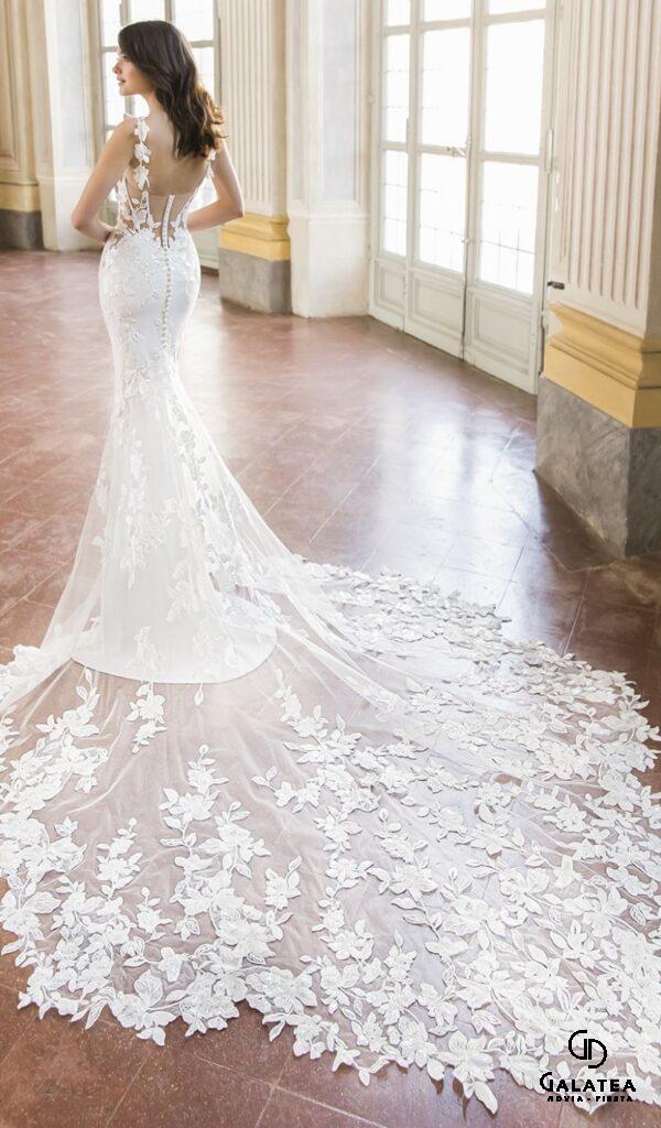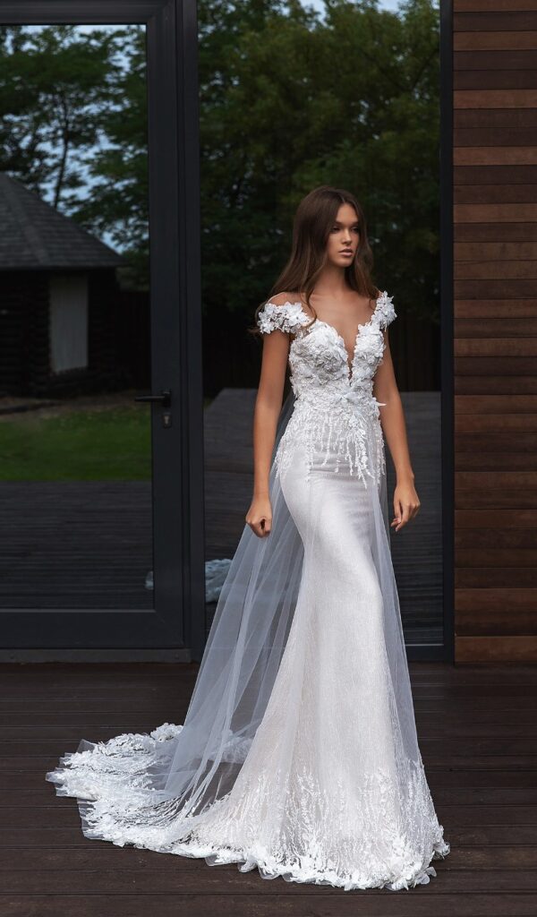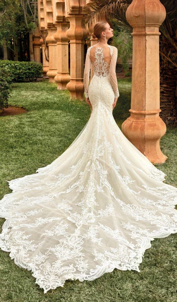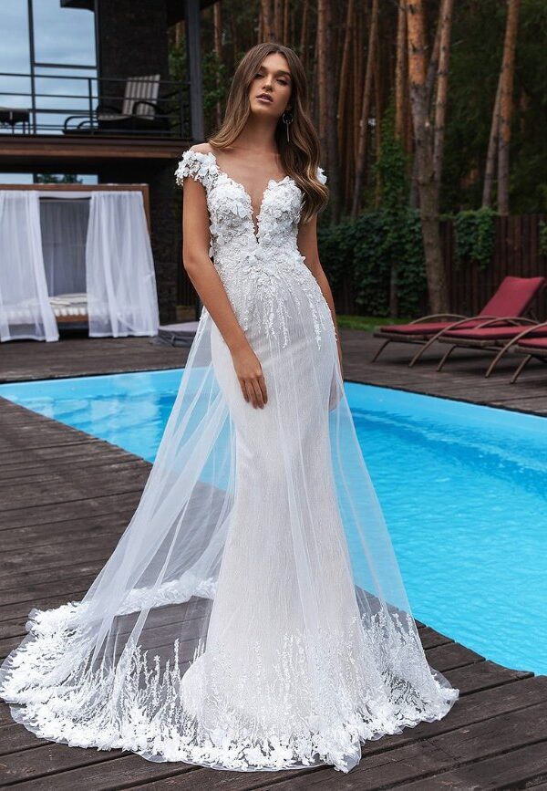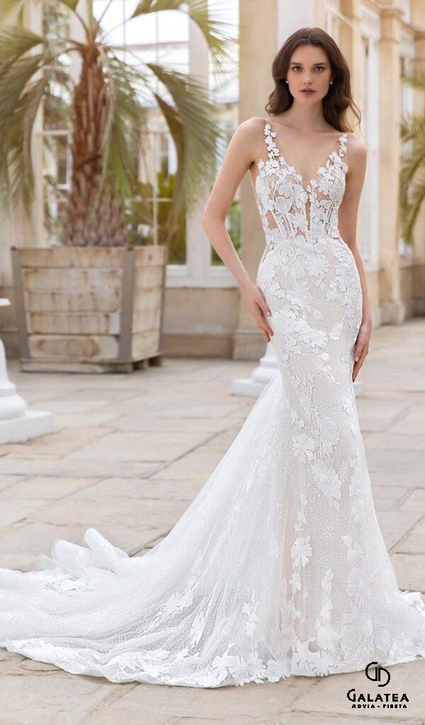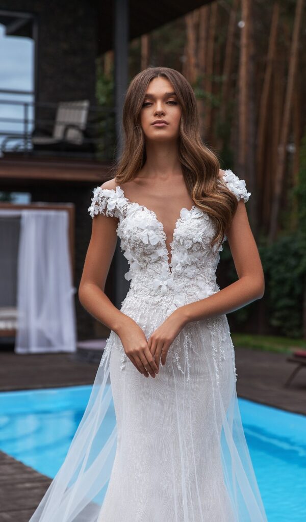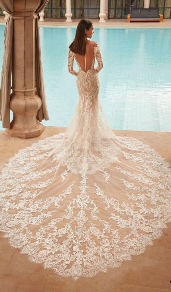 Los vestidos de novia sirena de la colección Mon Cheri son elegantes y sensuales. El corte sirena se ajusta al cuerpo desde la parte superior hasta la inferior, creando una silueta femenina y estilizada.