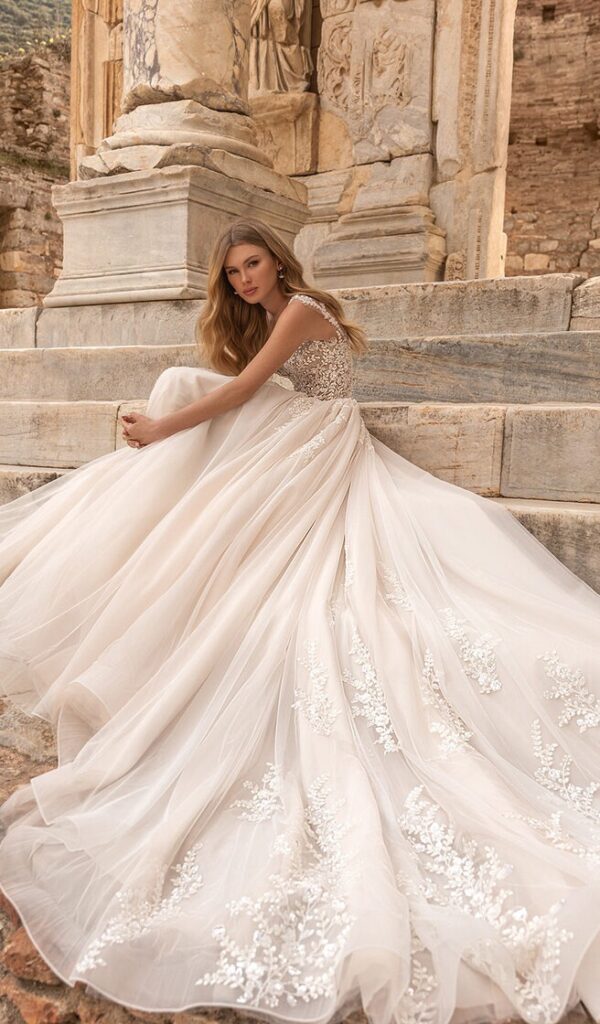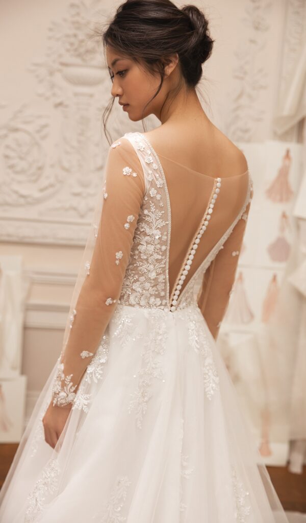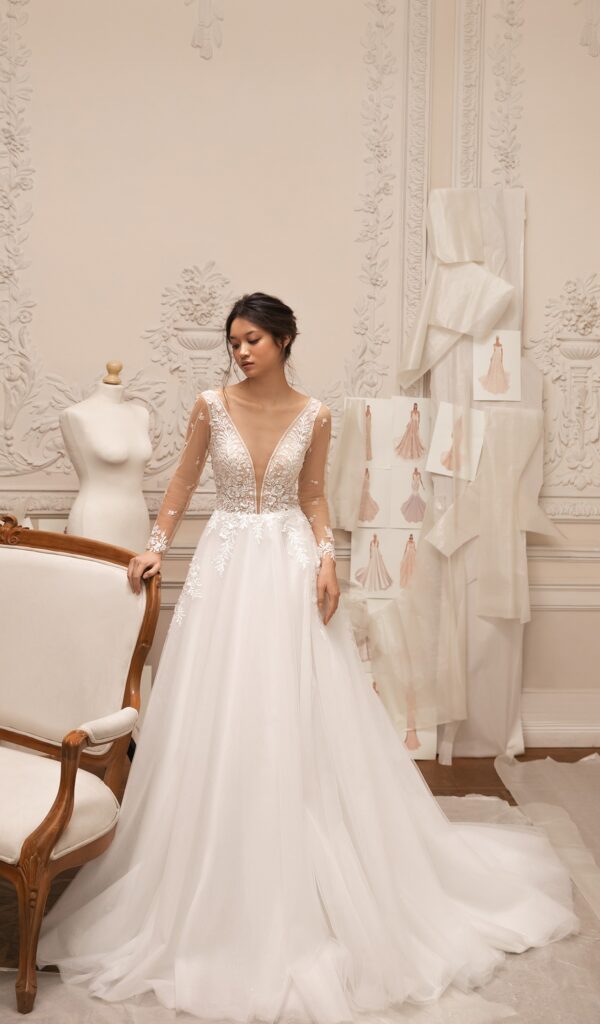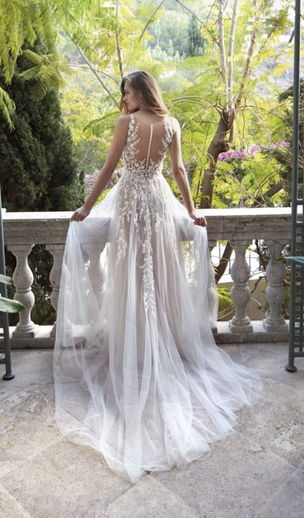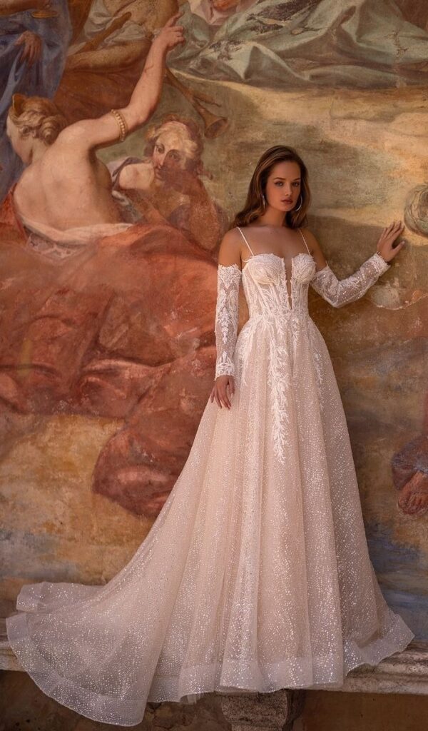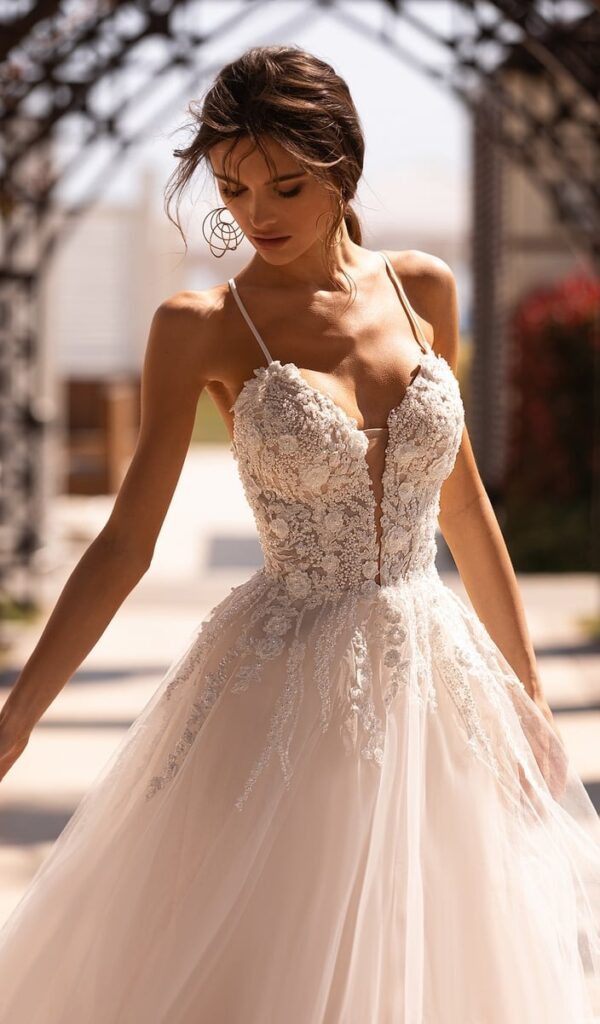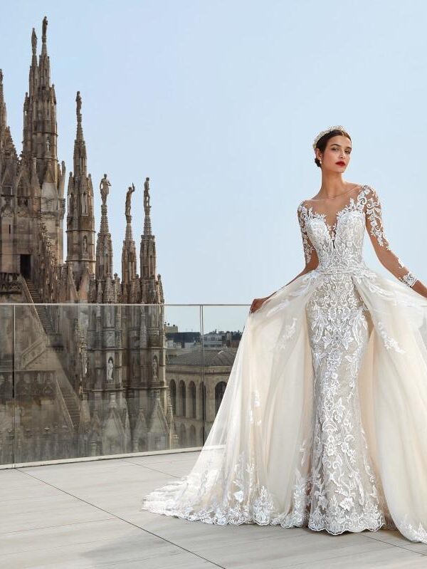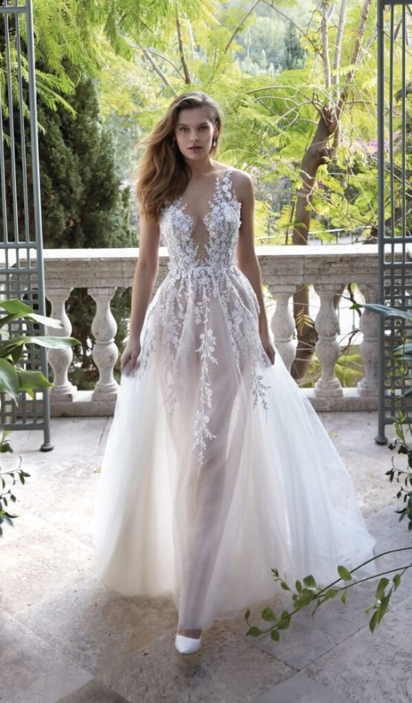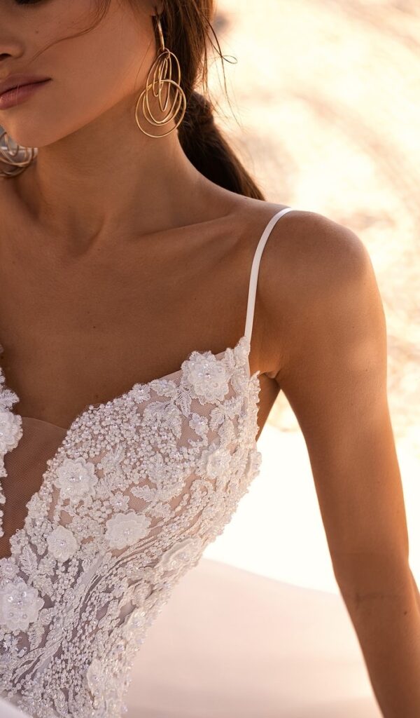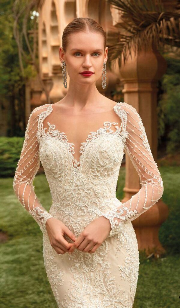 Estos vestidos están hechos con encajes italianos y franceses de la más alta calidad, y están disponibles en una variedad de estilos, desde sirena hasta princesa, línea A y para la playa o jardín.