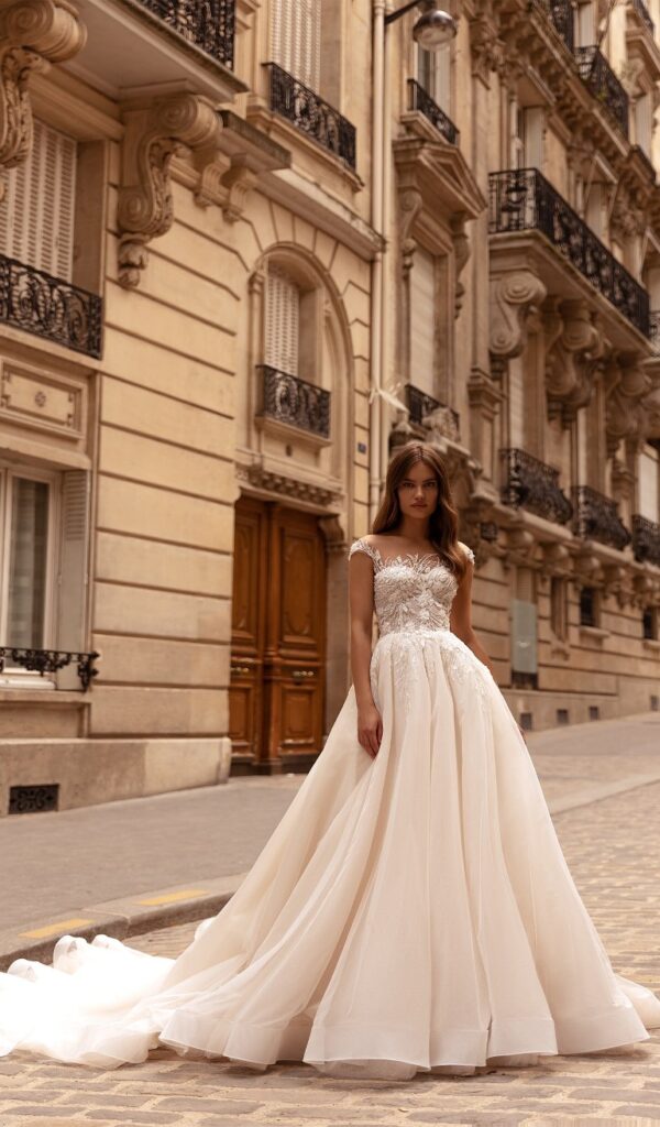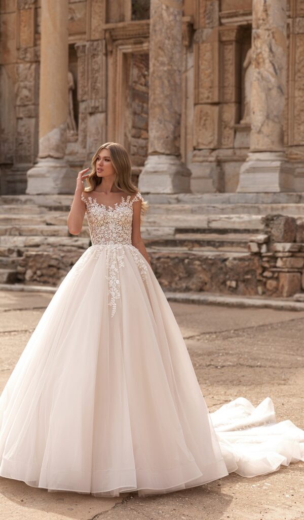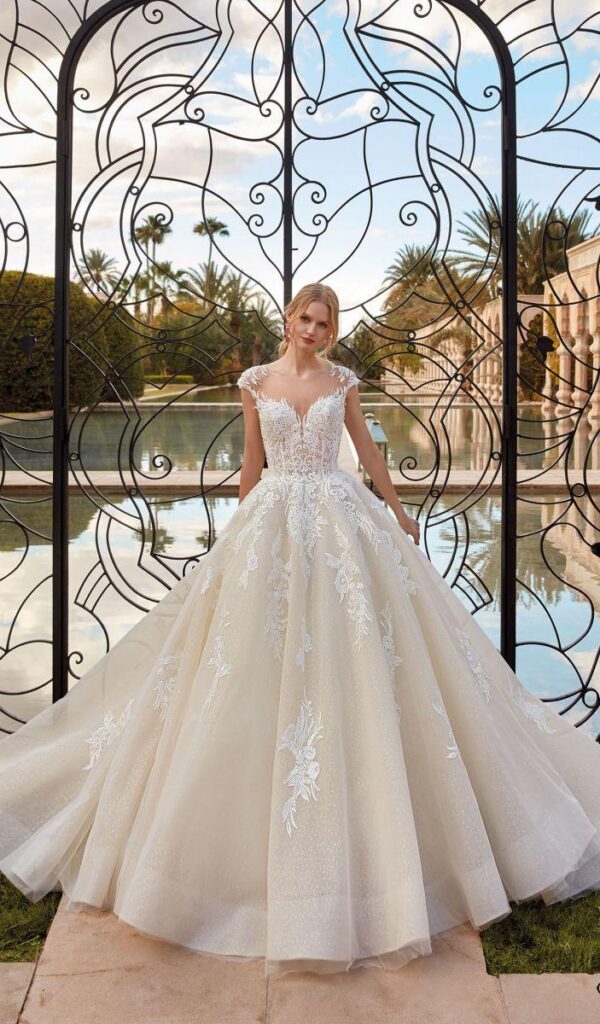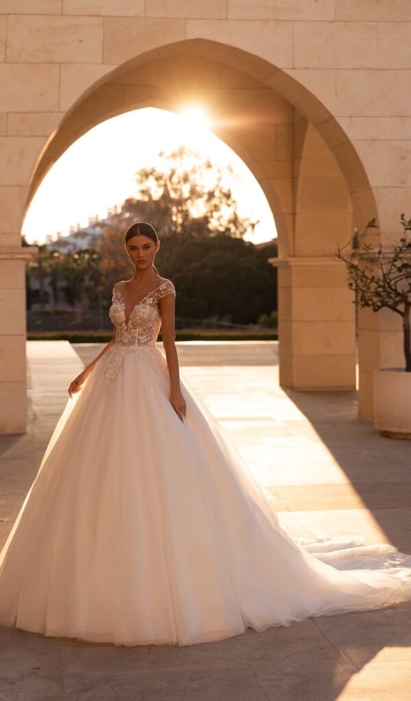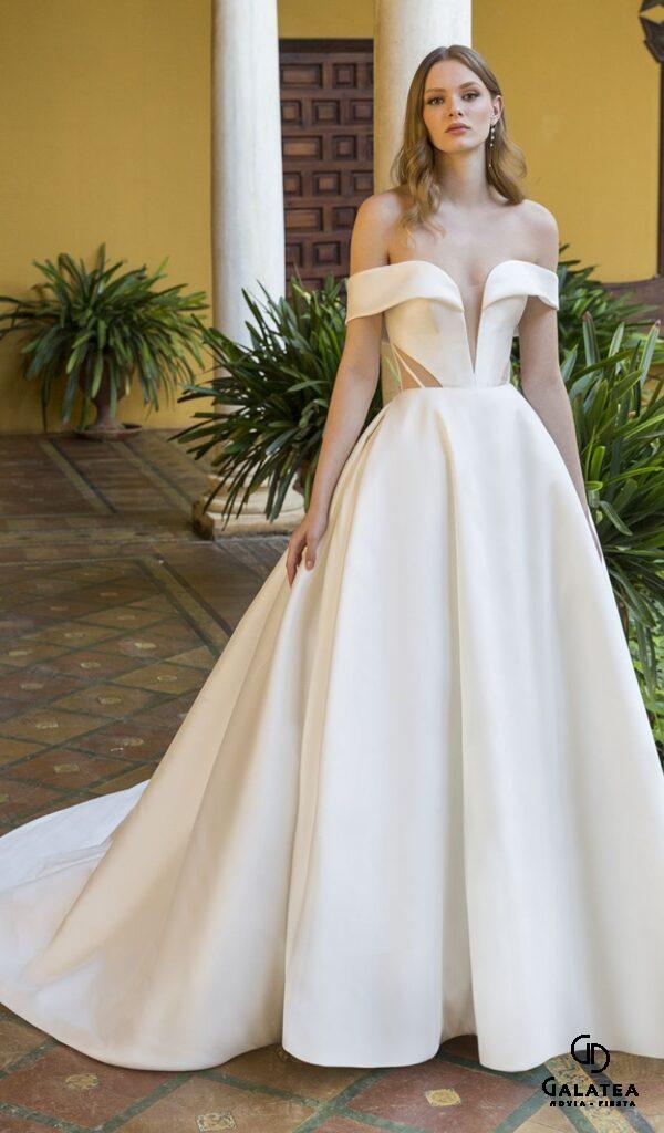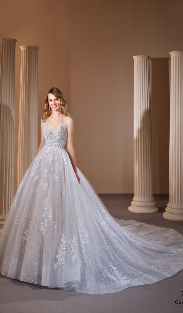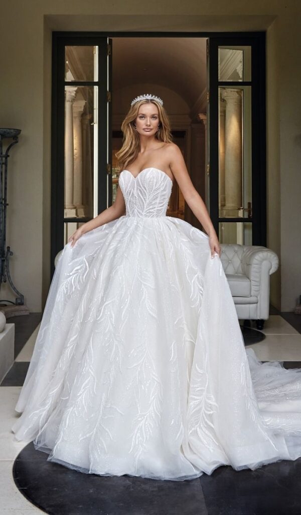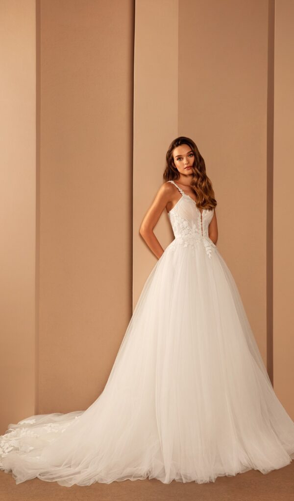 Los vestidos de novia princesa de la colección Mon Cheri de Boutique Galatea son románticos y femeninos. El corte princesa se caracteriza por una falda amplia que comienza a la altura de la cintura.