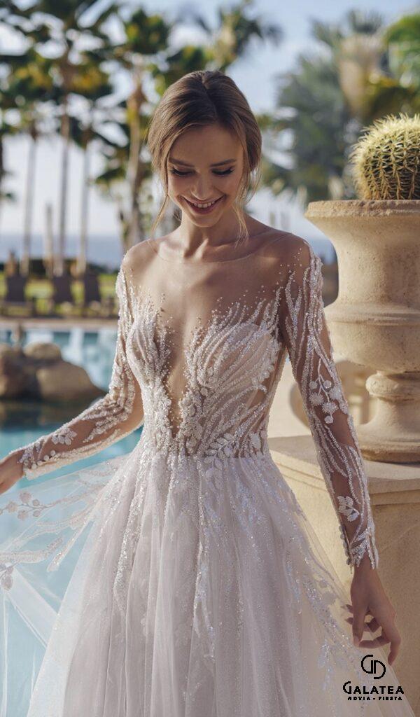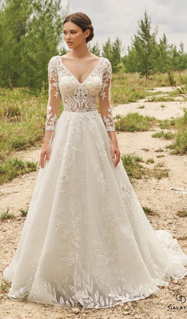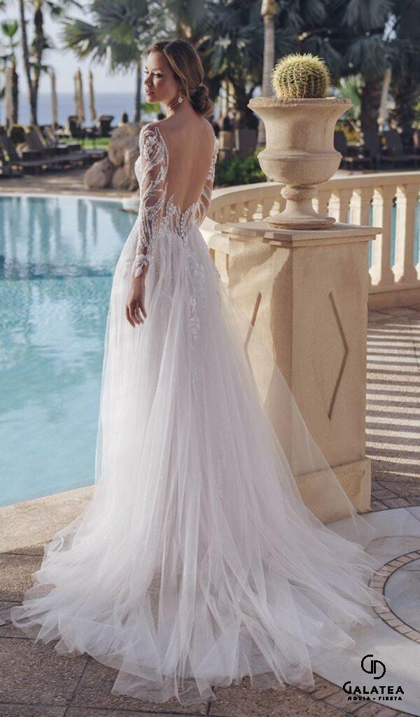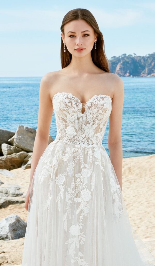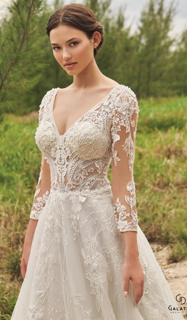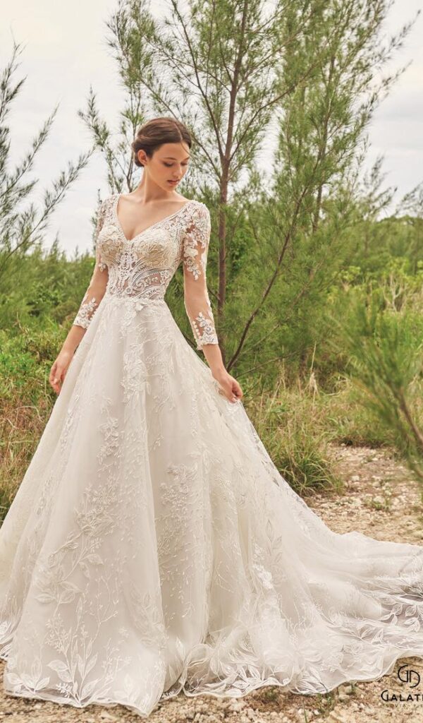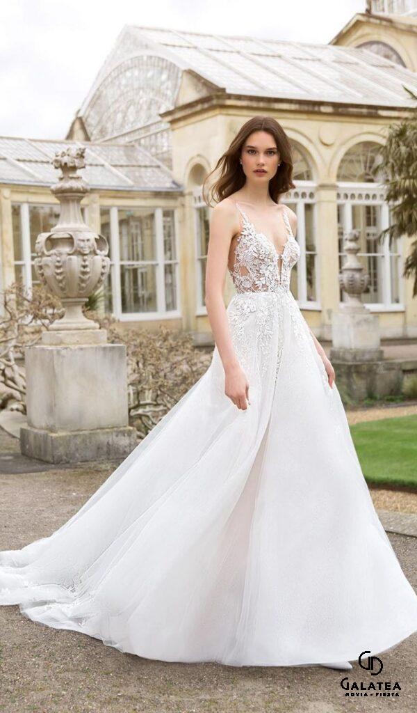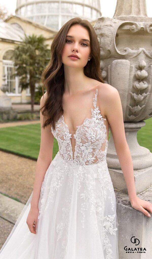 Estos vestidos son ideales para novias que buscan un look sofisticado y atemporal. Los vestidos de novia línea A de la colección Mon Cheri de Boutique Galatea están disponibles en diversos estilos y tallas.