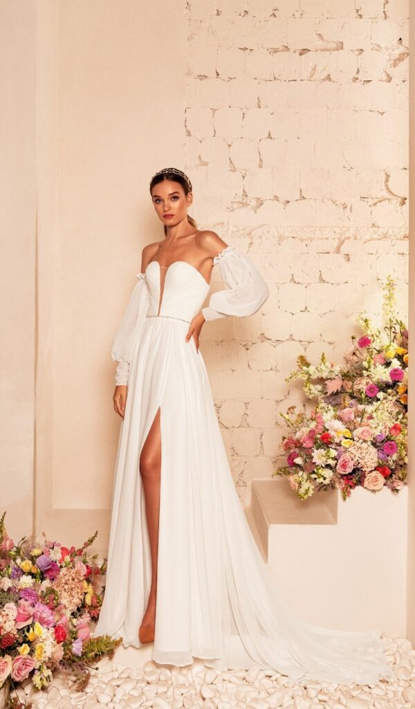 La colección Mon Cheri también incluye una variedad de vestidos de novia para la playa o el jardín. Estos vestidos son ligeros y cómodos, y están hechos con materiales frescos y transpirables.