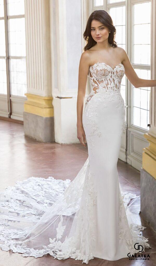 La colección Diamante de Boutique Galatea está compuesta por vestidos de novia importados de las capitales de la moda del mundo. Los vestidos están disponibles en una variedad de tallas, desde la XS hasta la 4XL, y vienen en una variedad de estilos, incluyendo sirena, princesa, línea A y para la playa o jardín.