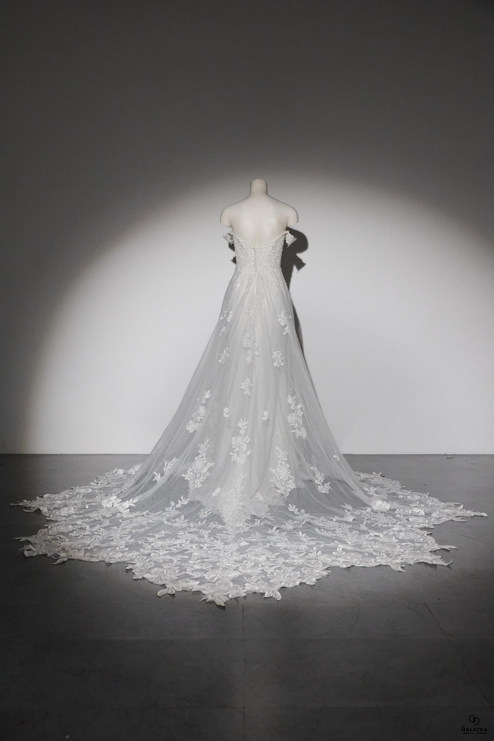 Cada puntada que guarda un sueño, en cada encaje que evoca dulzura, en cada caída que fluye con la gracia de quien sabe que está viviendo uno de los días más sagrados de su vida.